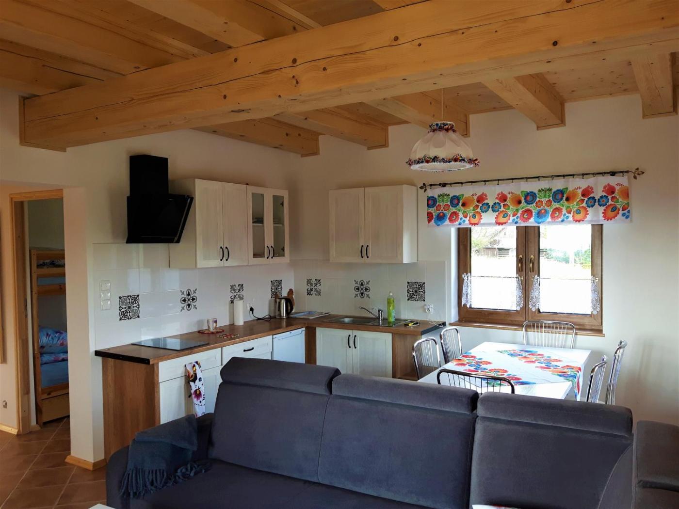 Apartament z 2 sypialniami. This apartments standout feature is the fireplace. Featuring a private entrance, this apartment is comprised of 1 living room, 2 separate bedrooms and 1 bathroom with a walk-in shower. Guests can make meals in the kitchen that is fitted with a stovetop, a refrigerator and kitchenware. Boasting a terrace with mountain views, this apartment also offers a tea and coffee maker and a flat-screen TV with satellite channels. The unit offers 3 beds. Apartament - 6 osobowy. Powierzchnia pokoju ok.: 1 mkw. ;