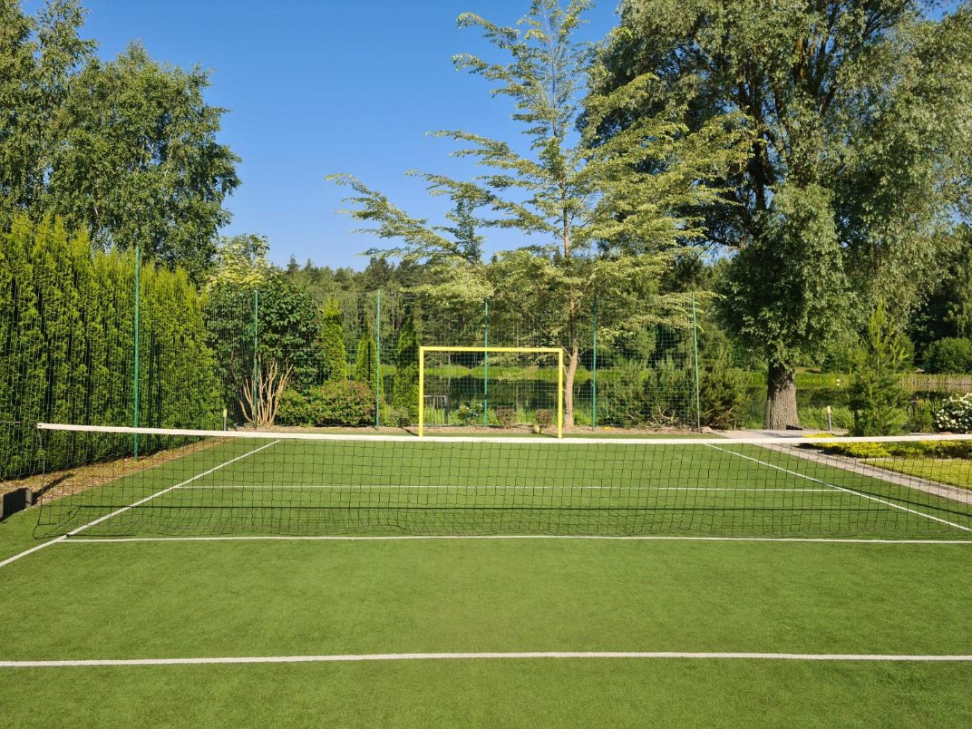 Willa. This villas standout feature is the fireplace. Guests will find a stovetop, a refrigerator, a dishwasher and kitchenware in the kitchen. The villa also has a barbecue. The villa offers a washing machine, a private entrance, a terrace with lake views as well as a shared bathroom featuring a walk-in shower. The unit offers 7 beds. Willa - 8 osobowy. Powierzchnia pokoju ok.: 150 mkw.